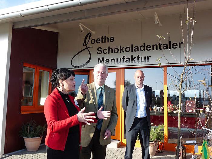 Reinholz kündigte an, er werde prüfen, ob man die Goethe Schokoladentaler Manufaktur GmbH mit nach Berlin zur Messe nehmen kann. Auch wenn man jetzt schon mit Feinkost Käfer einen sehr renommierten Kunden hat, neben vielen Hotels in ganz Deutschland.