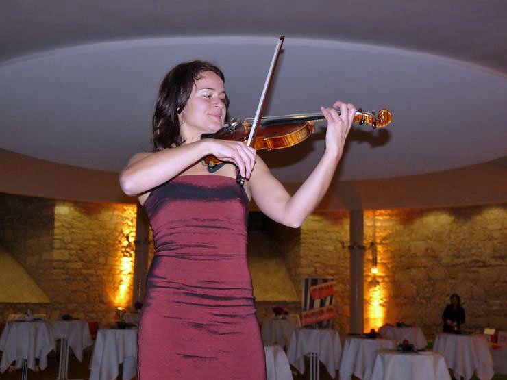Nicht weniger Beifall, aber wer will das schon messen, bekamen bezaubernde Sängerin Carolin Hellmuth (Bild oben), Gitarren-Virtuose Klaus-Dieter Weigert, sowie der Geigerin Katrin Deichstetter, Bild unten, die kn bei der Vorbereitung ihres Auftrittes erwischt hatte.