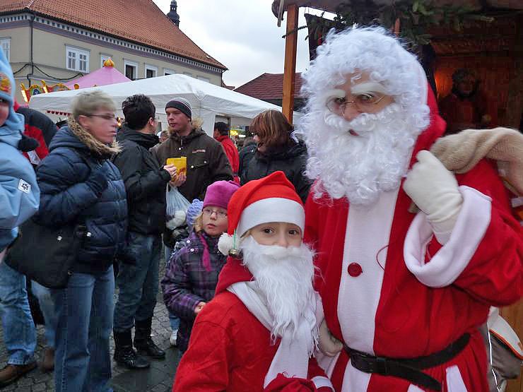 Natürlich war auch der Weihnachtsmann auf dem Weihnachtsmarkt präsent. Er hatte sich sogar einen klein Gehilfen mitgebracht, um die Arbeit ordentlich bewältigen zu können.