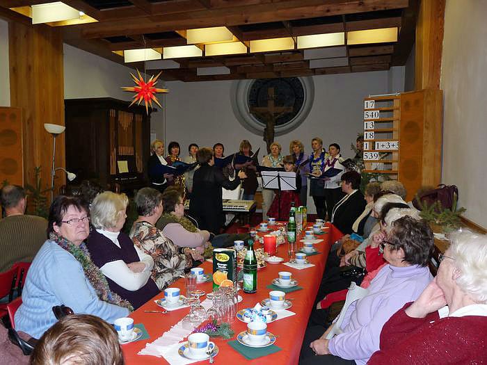 Lieder und Geschichten bei Kaffee und Kuchen sorgten für eine vorweihnachtliche Stimmung. Die Anwesenheit der Russlanddeutschen Chorgruppe garantierte eine gute Unterhaltung. Zuvor hatte Katarina Weizel die Gäste begrüßt, so u.a. Karla Kreyer von der FAU und Projektleiterin, Burgunde Krumm, welche die Gruppe der Migrantinnen im Rahmen des Projekts Stärken vor Ort begleitet hatte.