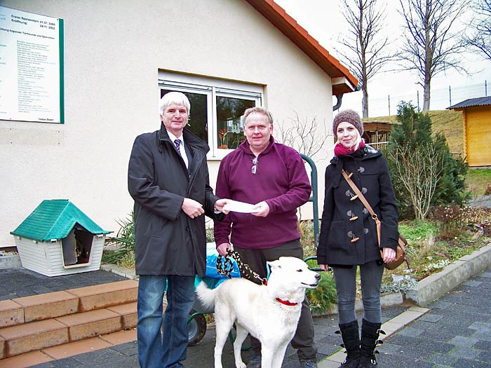 In dieser Zeit des Gedenkens darf man auch Tiere einbeziehen und die Menschen, die sich aufopferungsvoll um sie sorgen. Der Bundestagsabgeordnete Johannes Selle hat in diesem Sinne 60 kg Hundefutter und eine Spende von 50,00 EUR dem stellvertretenden Gnadenhofleiter, Herrn Mathias Erhardt, übergeben.