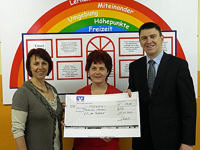 Der Bad Frankenhäuser Bürgermeisterkandidat Sören Schobeß (CDU) spendete 50 Euro für das Projekt "Gesundes Frühstück" der Initiative THALISA und übergab den Scheck an die Projektverantwortliche Frau Franke. Die Mitarbeiter von THALISA organisieren jeden Mittwoch ein gesundes Frühstück in der Grundschule "Am Tischplatt" in Bad Frankenhausen, worüber Direktorin Frau Schröter sehr erfreut und dankbar ist.
