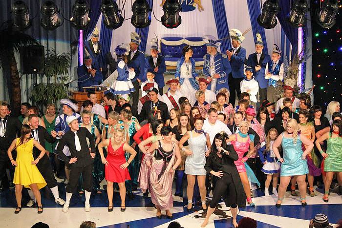 Zuganführender Verein beim Rosenmontagsumzug im Jahr 2012 ist der Karnevalsverein BCV "Blau-Weiß" Beberanien e.V.,