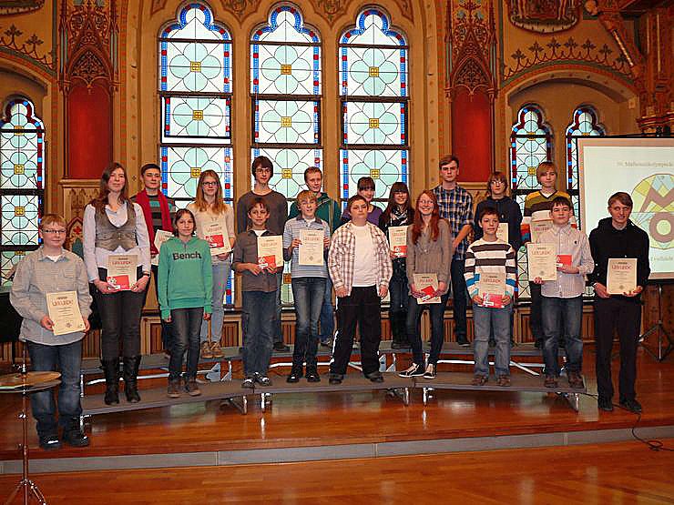 Insgesamt 31 Mal konnten 1., 2. und 3. Preise an Schüler 5. bis 12. Klassen der Gymnasien des Kyffhäuserkreises vergeben werden. Mirko Johlke aus Bad Frankenhausen schaffte es, bereits das vierte Mal unter den Preisträgern zu sein. Hut ab! Da er "erst" in der 9. Klasse ist, bestehen noch weitere Steigerungsmöglichkeiten.