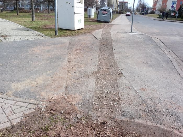 Auch so scheint man recht großzügig bei der Versiegelung der aufgerissenen Straßen und Gehwege umgegangen zu sein. Die Bilder können das gar nicht so deutlich rüberbringen. Es wurden gerade bei den Gehwegen richtige Stolperkanten hinterlassen. Besonders in der Segelteichstraße. Die Gehwege dort werden aber viel von den Bewohnern der Seniorenresidenz EigenheimStraße/Segelteichstraße benutzt.