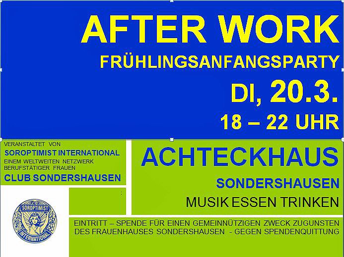 Der Soroptimist Club Sondershausen lädt Sie wieder herzlich ein zur After Work Party ein. Wo und wann das Ganze stattfindet, erfahren Sie hier...