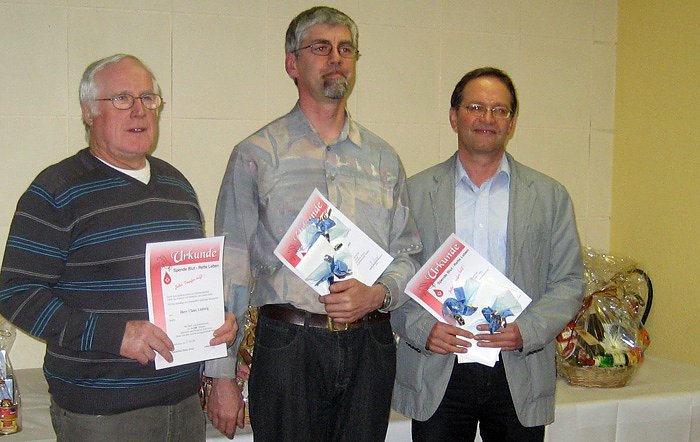 Alle Blutspender und ehrenamtlichen DRK-Helfer wurden vom Präsidenten, Landrat Peter Hengstermann, und dem Vorstandsvorsitzenden des DRK-Kyffhäuserkreisverbandes e.V. Sondershausen, Herrn Karl-Heinz Genzel, sowie vom Leiter des neuen Institut für Labormedizin, Mikrobiologie und Transfusionsmedizin am Südharz-Krankenhaus Nordhausen Herrn Chefarzt Prof. Dr. med. Reinhard Kappe und der neuen Leiterin der Blutspendezentrale Frau Oberärztin Dr. med. Maria Westphal geehrt.