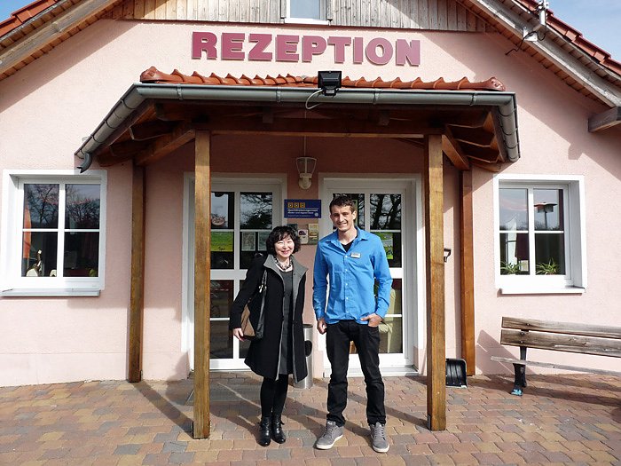 Der Leiter Marketing des Ferienparks, Michél Kalensee, empfing heute eine ganz weithergereiste Managerin aus dem Tourismuswesen, Sarangerel Jambal, aus der Mongolei. Betrieben wird dort ein Tourist-Camp, in dem die Besucher in Jurten untergebracht sind und für die es dort auch interessante Wellness- Angebote gibt, z.B. auf Basis Stutenmilch. Später sollen aber parallel noch feste Häuser hinzukommen, damit der Besucher wählen kann, ob landestypischere Jurte oder doch lieber das gewohntere feste Haus.