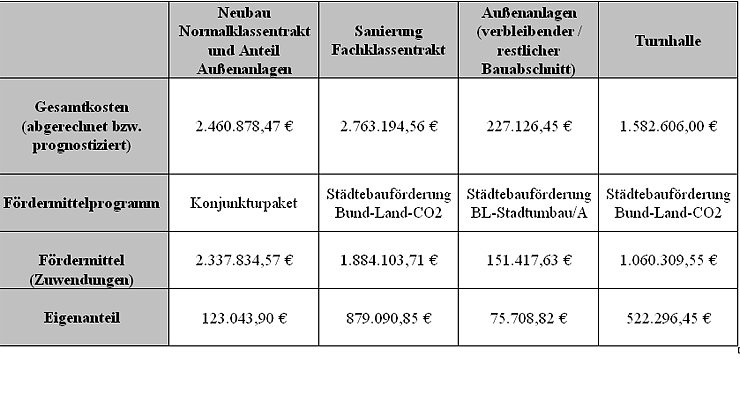 Im Juni 2010 wurde der Startschuss für den Neubau des Normalklassentrakts gegeben. Nach Abschluss der bauvorbereitenden Leistungen und der Ausschreibung sowie Vergabe der Bauleistungen konnte nach witterungsbedingter Unterbrechung die Baudurchführung im Februar 2011 beginnen.