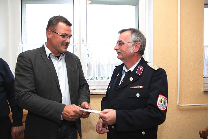 Der Bürgermeister von Helbedündorf, Herr Jörg Steinmetz, bedankte sich bei den Kameradinnen und Kameraden für die ehrenamtliche Bereitschaft zur Hilfe bei Brandgefahr und anderen Hilfeleistungen für die Einwohner und überreichte an den Wehrführer Wilfried Auer eine Geldprämie.