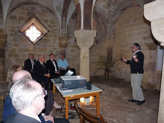 Zum Nachmittag konnte Günther Chmielus die Gäste zu einem interessanten Vortrag einladen. Udo Hopf, Bauhistoriker, berichtete in einem interessanten Vortrag über die Baugeschichte des Klosters und archäologische Untersuchungen und archivalische Recherchen. Wurde schon 2005/2006 gerätselt, ist das Kloster nun 1.000 Jahre alt (gefeiert wurde 2006), so säte auch Hopf heute nochmals Zweifel.