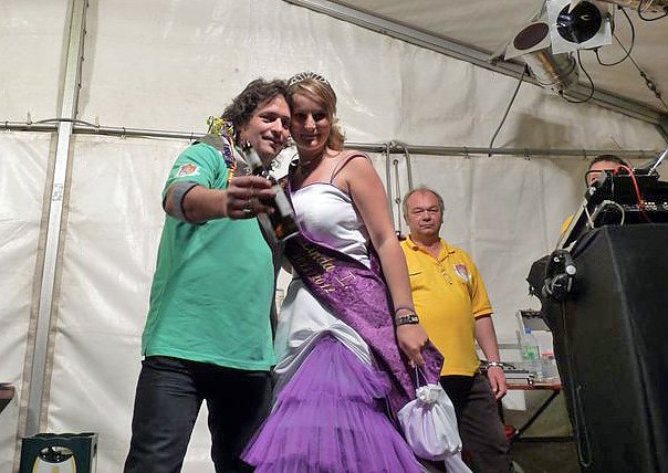 Am längsten konnte Axel Pawlick das Bierglas halten und so bekam er aus der Hand der Fliederkönigin die Insignien des Maikönigs, Schärpe und T-Shirt.
