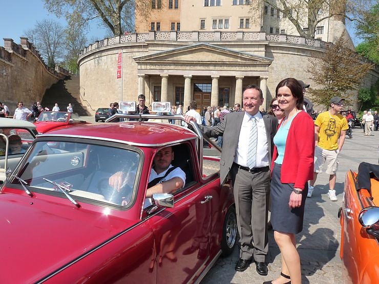 Als Gast hatte man sich Prominenz aus Erfurt geholt. Mit Justizminister Holger Poppenhänger ging Landratskandidatin Antje Hochwind über den Markt, um nach den Oldtimern zu schauen.