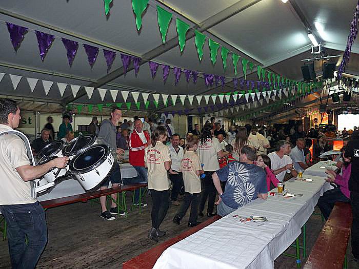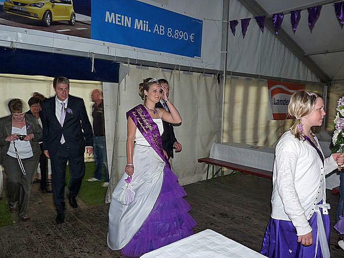 Unter den Klängen des Fanfarenzuges Bad Frankenhausen zog der Korso der ehemaligen Fliederköniginnen vom Markt kommend, wo die Fliederkrone zuvor gesetzt worden war, in das Festzelt ein.