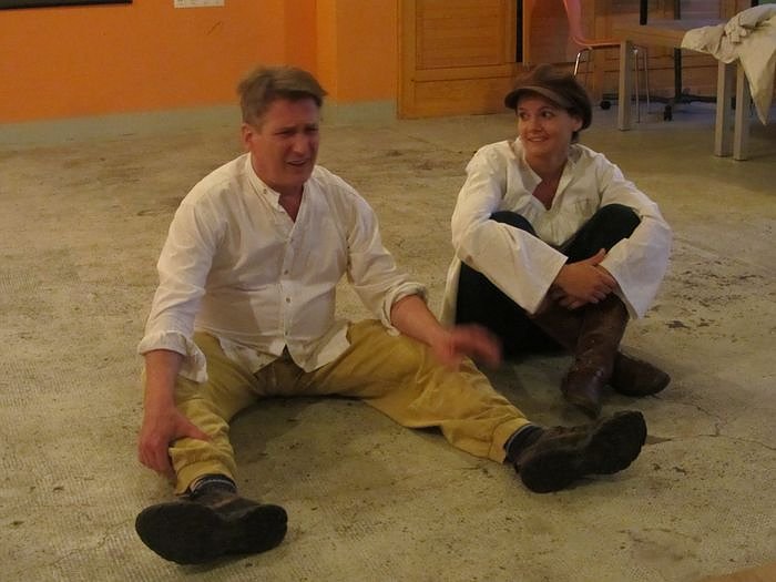 Probenfoto aus der Grimmelallee: Matthias Mitteldorf mit Heide Binder