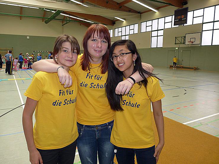 Stellvertretend für die vielen Helfer der Veranstaltung zeigt hier kn Schülerinnen der 7. Klasse des Schollgymnasium. Diese Klasse hatte sich als Zeitnehmer und Wettkampfrichter eingebracht. Denn es gab heute nicht nur für jede Kindereinrichtung eine Anerkennungsurkunde für die Teilnahme, sondern es war tatsächlich ermittelt worden, wer sind die fitesten Vorschulkinder. Dafür gab es auch eine richtige Siegerehrung und Preise für die sechst Besten.