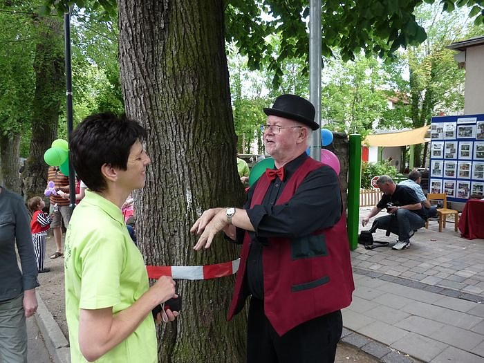 Die Leiterin der Einrichtung, Karin Milde hier im Gespräch mit dem Zauberer, haderte etwas mit dem Schicksal. Wir haben dieses Jahr keinen so richtig passenden Termin gefunden. Ständig war an den Wochenenden viel los.