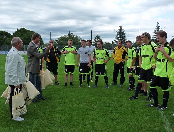 Nach dem Spiel gab es Freibier für die Zuschauer und einer der Sponsoren, die Fa. Isoplus Sondershausen, spendete für die Spieler Handtücher.