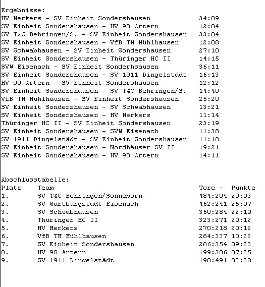 Der Beginn der Rückrunde verlief zäh. Zwar konnte mit dem 12:12 beim HV 90 Artern der erste Auswärtspunkt gefeiert werden, doch dann fielen die Sondershäuserinnen wieder in einen Tiefschlaf. Zu Hause hätte man gegen Schwabhausen und Merkers die Punkte holen müssen aber in beiden Spielen fehlte in der zweiten Hälfte die Puste und die Cleverness. auch beim Gastspiel in Mühlhausen wurden die zwei Punkte leichtfertig hergegeben. Zu viele Chancen blieben auf der Strecke liegen und landeten nicht im Tor, somit freuten sich immer die Gegner. Ein sicherer Rückhalt für die "knappen" Niederlagen war Schlussfrau Anne Langmann. Sie zeigte gute Leistungen und ärgerte die gegnerischen Angreiferinnen ein ums andere Mal. Aber sie konnte sich auch auf ihre Deckung verlassen, die ihr viel Arbeit abnahm. Zum Gastspiel beim Thüringer HC war erneut der Auswärtszweier drin aber es fehlten dann doch 4-5 Minuten. Die Gastgeber aus Bad Langensalza waren stehend k.o. und ließen viele Chancen liegen. Am Ende gab es auch hier eine Niederlage und somit nichts zu holen. Gegen den Ligavize vom Wartburgstadt Eisenach nahm das Debakel seinen Lauf: sechs Spiele wurden nacheinander verloren und nun ging es am letzten Spieltag zum SV 1911 Dingelstädt. Ein Sieg sollte gegen das Schlusslicht dringend her. Dank einer starken Mannschaftsleistung mit wenig Handballkost konnten die Sondershäuserinnen den ersten Auswärtszweier feiern. Der Sieg bei den Eichsfelderinnen krönte eine super Ligaleistung und sicherte wenigstens noch den 7. Tabellenplatz.
