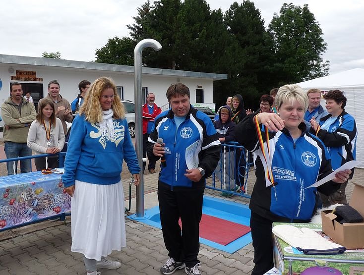 Aber geknickt war man beim Badesportverein e.V. Großfurra, um dessen Vereinsvorsitzenden detlef Wiegel, deshalb nicht. Trotzdem war es schade, dass das riesige Engagement der vielen Helfer und Sponsoren dieses Jahr nicht ganz so belohnt wurde, wie in den letzten Jahren. Aber die wieder tollen Einzelleistungen brachte die Augen aller Helfer zum glänzen, wie hier bei der Siegerehrung zu sehen ist, die Katharina und Markus Töppe leiteten.