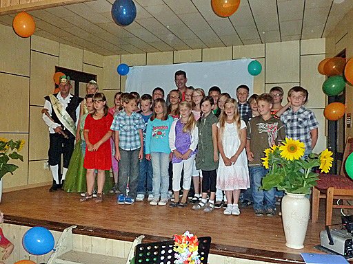 Natürlich wurden auch die Eltern für die Unterstützung ihrer Sprösslinge belohnt. Laubkönig Jörg I. und seine Hofdame Aline II. verabschiedeten die Kinder mit einem gemeinsamen, königlichen Foto.