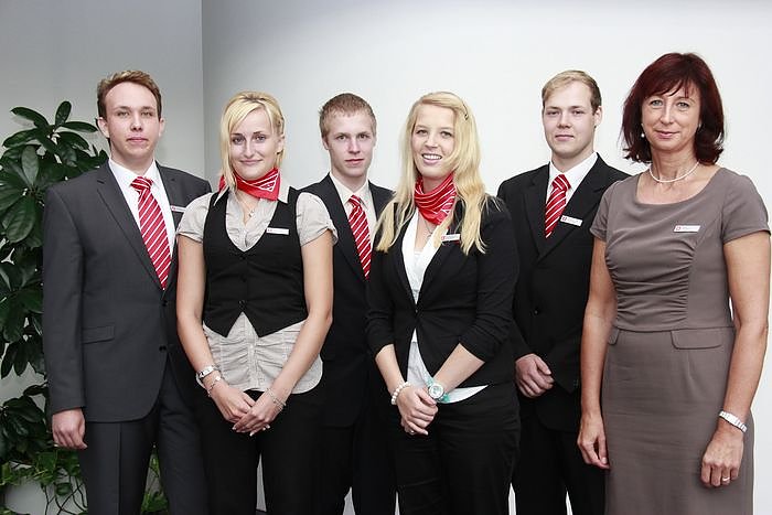 Autor: knv.l nach r.: Lars Nagl, Sophie Rohloff, Sven Otto, Daniela Romisch, Tobias Schmidt, Ausbildungsleiterin Heike Stegmann