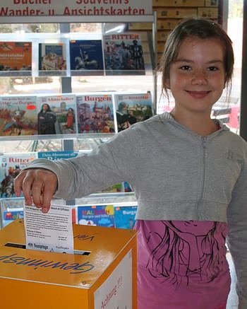 ... als erste Teilnehmerin am Gewinnspiel ihren Glückscoupon einzuwerfen. Bis 20. September haben die Besucher des Kyffhäuser-Denkmals jetzt Zeit, es ihr nachzutun und die ins Feld gepflügten Märchen zu erraten.