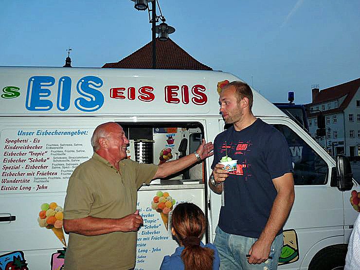 Es war ein Star zu Anfassen, der da heute die Massen begeisterte und sich nach getaner "Arbeit" ein Eis leistete, ein "alkoholfreier" Cuba-Libre war nicht zur Hand, denn auf Bier steht er nicht so, wie der frischgebackene Olympiasieger im Diskuswurf von London, Robert Harting, bei der Athletenpräsentation betonte.