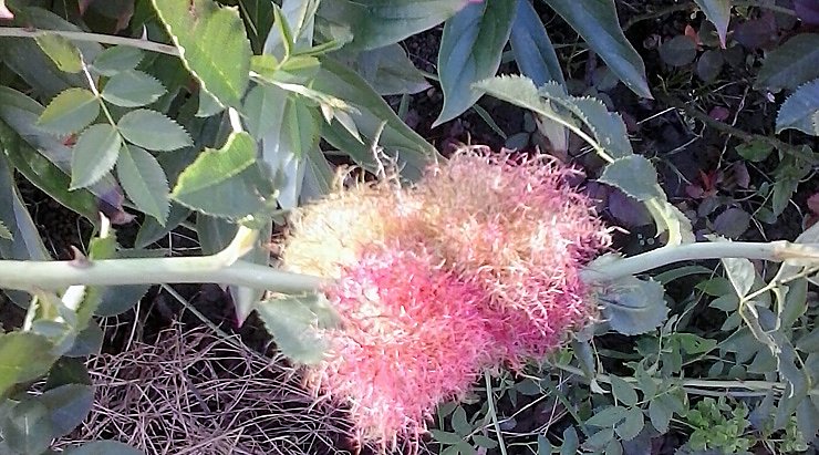 Und in der Tat, das sieht recht bizarr aus, was hier zu sehen ist. Ein Rose war im Winter zurückgefroren und statt normaler Triebe schob sich aus der Erde ein so genannter wilder Trieb. Und dieses seltsame Gebilde umschließt diesen wilden Trieb völlig.