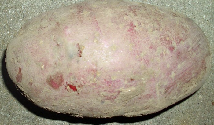 Bei der überwiegend festkochenden Kartoffelsorte bei Thomas Leipold im Garten in der Sparte Glückauf war die Ernte dieses Jahr sehr reichlich und vor allem gab es auch sehr viele große Kartoffeln, viele mit einem Einzelgewicht zwischen ca. 350 Gramm bis 600 Gramm und mehr, wie dieses Exemplar zeigt. Natürlich sind diese Kartoffeln "Bio" im natürlichsten Sinn.