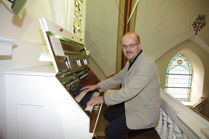 Zum Abschluss des Konzertes gibt es eine Premiere. Christian Kropp (Bild oben), dessen Orgelwerke seit 2011 verlegt werden, spielt seine im Sommer dieses Jahres neu entstandenen "Operettenmelodien."