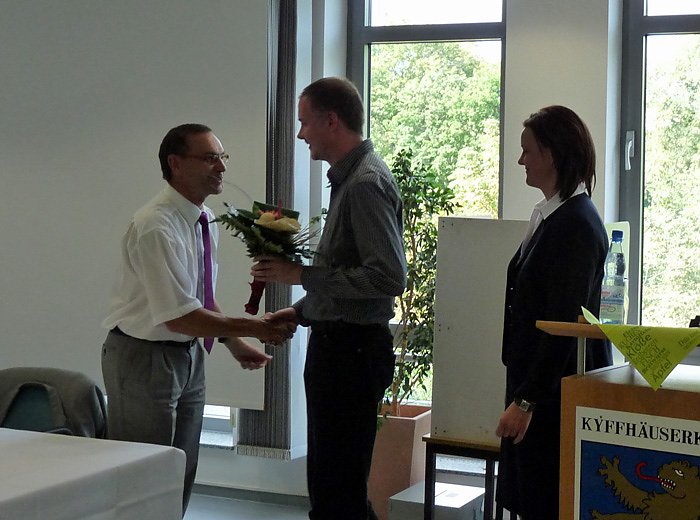 Autor: khhMit der Wahl von Antje Hochwind (SPD) zur neuen Landrätin musste auch ein Kreistagssitz neu besetzt werden, den Antje Hochwind bisher eingenommen hatte. Da Roßlebens Bürgermeister Rainer Heuchel als "Nachrücker" der Gesamtliste der SPD/ GRÜNE das Mandat ablehnte, war der nächste Nachrücker, Jörg Esser (SPD) Kreistagsmitglied, hier bei der Verpflichtung durch die Landrätin.
