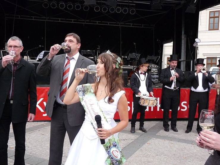 Wichtigste Aufgabe der Weinprinzessin bis zum Sonntag ist, die zahlreichen Gäste zum Weintrinken zu animieren. Nun ja Gesundheitsapostel müssen jetzt leider mal wegschauen, aber man kann beim Weinfest auch mit alkoholfreien Getränken fröhlich sein. Außerdem solle Wein, besonders der Rote, gegen manche Krankheit schützen