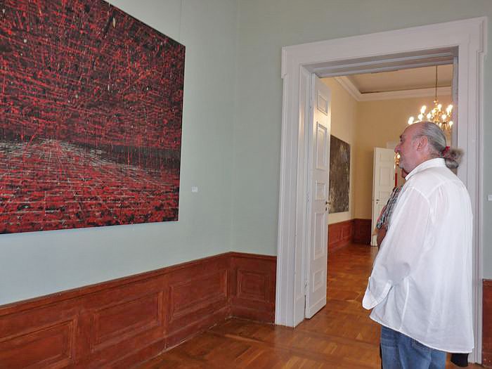 Autor: khhDer in Lichtenstein in Sachsen geborene Künstler Ulrich Reimkasten, hier vor seinem Werk "Regen", war nach seinen Studien in Schneeberg und an der Burg Giebichenstein in Halle/Saale in den 80er Jahren freischaffend und als Meisterschüler an der Akademie der Künste der DDR tätig, bevor er 1995 zum Professor für Malerei und Textile Künste an seiner alten Studienstätte Burg Giebichenstein berufen wurde. 2010 gründete er das Institut für Textile Künste SEPIA.