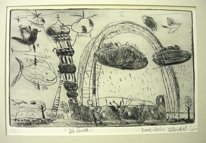 Franz Wenkel "Die Kirche", Kaltnadelradierung von 2011 Foto: "Franz, Kirche", Rechteinhaber: Fred Böhme/Archiv Panorama Museum