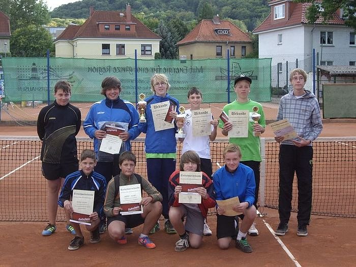 Im Finale standen sich somit Marvin und Sören gegenüber. Nach gutem Beginn und einer couragierten Leistung führte Sören im ersten Satz schnell mit 5:2. Dann aber gelang Marvin das Comeback und er siegte nach einer Leistungssteigerung mit 7:5 und 6:0. Den Sieg in der Nebenrunde sicherte sich Dennis Weber (5) nach einem 6:3, 6:3-Sieg über Adrian Tomaschek.