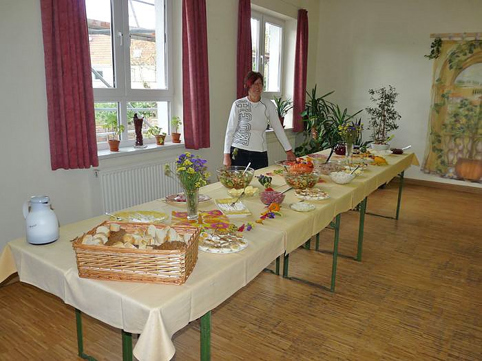 Das Willkommen richtetesich an die gesamte Bevölkerung. Und so kamen nicht nur Mitglieder der Migrantengruppe Kontakt sondern auch Gäste aus den beiden Wohngebieten Hasenholz und Östertal an die reichlich gedeckte Tafel zum Frückstück.