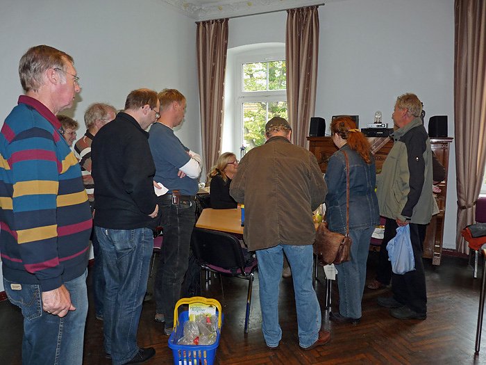 Der Pomologen, Herr Jankowski, hatte schon heftig zu tun und das in zweierlei Hinsicht. Erst mussten auf den Tischen die rund 100 Sorten Äpfel aufgebaut werden. Neben Buch schaute er bei der Bestimmung der Äpfel lieber gleich am Tisch nochmals nach, ja was war das nun wirklich für eine Sorte und es wurde später alles fein säuberlich notiert.