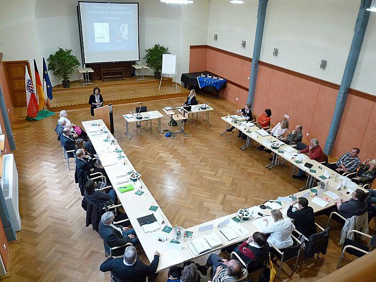 An dieser Multiplikatorenkonferenz nahmen Stadt- und Gemeindevertreter, Partnerschaftsbeauftragte und Mitglieder von privaten Partnerschaftsvereinen teil, die sich für internationale Partnerschaften einsetzen, vor allem beim Austausch in den Bereichen Jugend, Musik, Sport, Senioren und Kultur und somit einen Beitrag zum europäischen Einigungsprozess leisten. Seitens der Stadt nehmen auch die 1. Beigeordnete Cornelia Kraffzick (SPD) und die Fachbereichsleiterin Soziales Mareen Biedermann teil. Kraffzick gestaltete u.a. einen Workshop zum Thema "Neue Partnerschaften aufbauen und stärken" leiten.