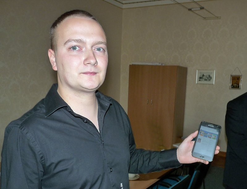 Andreas Adloff demonstriert mit seinem Smartphone, dass die Webseite auch für diese Geräte gut einsehbar ist. Es war uns wichtig, sagte er im Gespräch mit kn, dass man die Webseite aber auch mit älteren Monitoren, die vielleicht nur eine Auflösung von 800 x 600 haben, noch gut betratet werden kann. Auch an die RSS-Feeds wurde bei den Pressemeldungen gedacht.