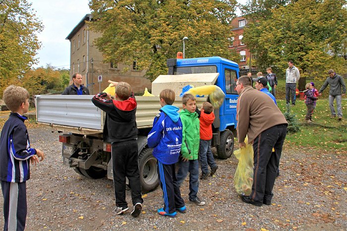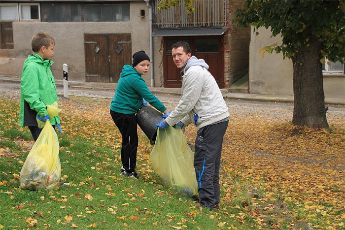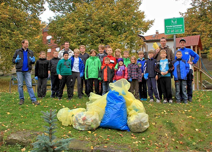 Oldislebener Sportplatz und im ganzen Ort mit großem Einsatz herumliegende Abfälle ein.