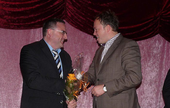 Von den 65 anwesenden CDU-Mitgliedern stimmten 62 Mitglieder für Jens Krautwurst (li.) als neue Vorsitzenden. Drei Gegenstimmen gab es nur. Der Generalsekretär der Thüringer CDU, Mario Voigt, war einer der ersten Gratulanten.