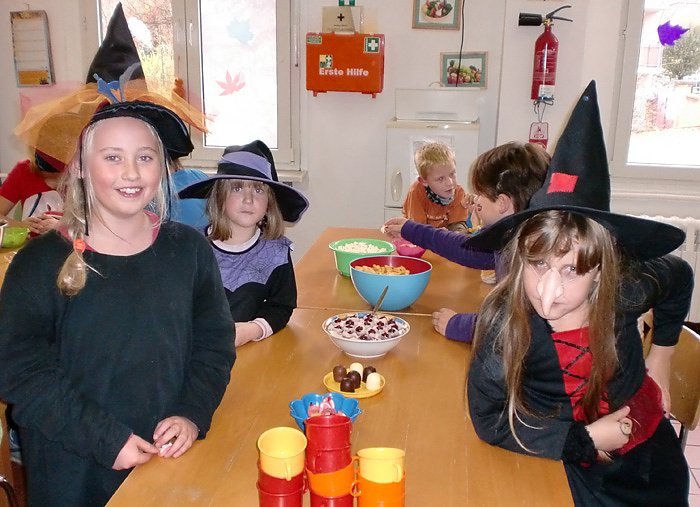Ein weiteres Highlight war die große Halloween-Party in der zweiten Ferienwoche, bei der es auch gruslige aber schmackhafte Köstlichkeiten gab. Vampire, Hexen und Geister versammelten sich zum gemeinsamen Gruseln und Feiern im Partykeller der Einrichtung. Im schimmernden Licht der Discokugel und bei lauten Beats ließen es die Kinder richtig krachen und schwangen gekonnt ihr Tanzbein. Wer weniger Lust aufs Tanzen hatte, konnte sich einen Gruselfilm im Medienkeller anschauen - bevor am 03.11. die Herbstferien schon wieder vorbei waren.