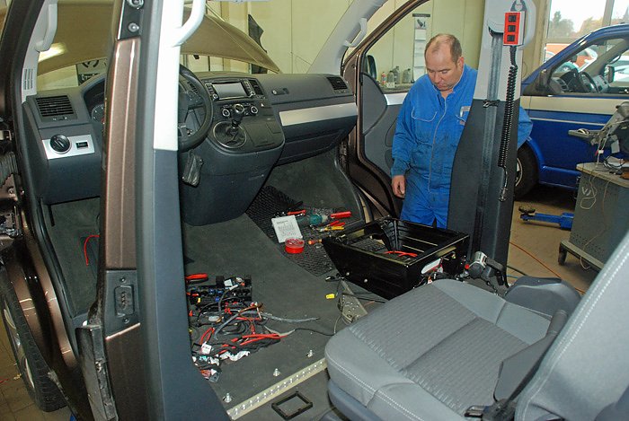 Um die Reise im Wagen noch sicherer zu machen, hat die Firma dafo Deutschland GmbH aus dem rheinland-pfälzischen Neustadt/Wied, der Familie eine High-Tech Löschanlage geschenkt und eingebaut. Wenn ein Auto brennt, zählt jede Sekunde, erklärt Geschäftsführer Markus Stille, während er höchstpersönlich die Anlage montiert.