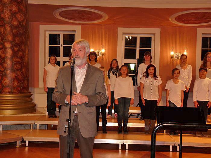 Der Direktor der Landesmusikakademie Thüringen, Prof. Dr. Eckart Lange, bei der Eröffnung des Abschlusskonzerts im Ambiente des Achteckhauses von Schloss Sondershausen mit seiner hervorragenden Akustik.