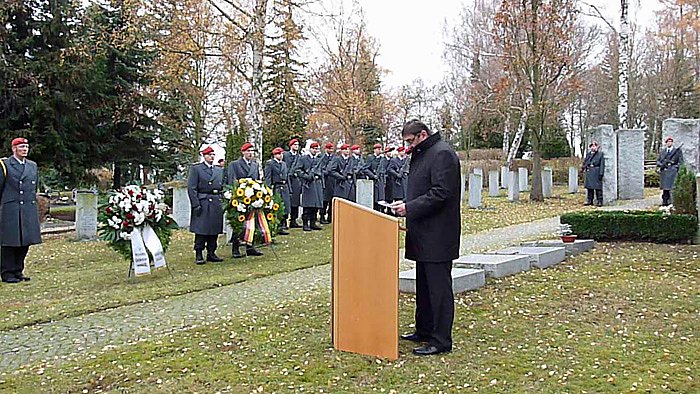 Auf dem Sondershäuser Hauptfriedhof fand am heutigen Vormittag eine feierliche Kranzniederlegung anlässlich des Volkstrauertages statt.