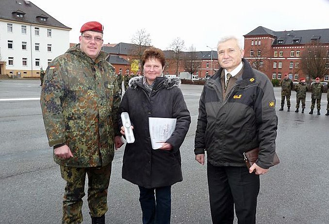 Den Appell nutzte Schaus um einige Auszeichnungen für einzelne Angehörige des Bataillons und des Standortes vorzunehmen die geleistete Arbeit eine Würdigung erfahren. Begonnen wure mit einer eher ungewöhnlichen Auszeichnung und Schaus danke der Leiterin des BwDLZ Weißenfels für die Initiative. Gisela Nördler wurde ausgezeichnet. Frau Nördler kümmert sich um unsere Außenanlagen, so Schaus, die zusammen mit der herrlichen Infrastruktur, die Kaserne zu einem Schmuckstück inmitten unserer Garnisonsstadt macht und das bereits seit 20 Jahren.
