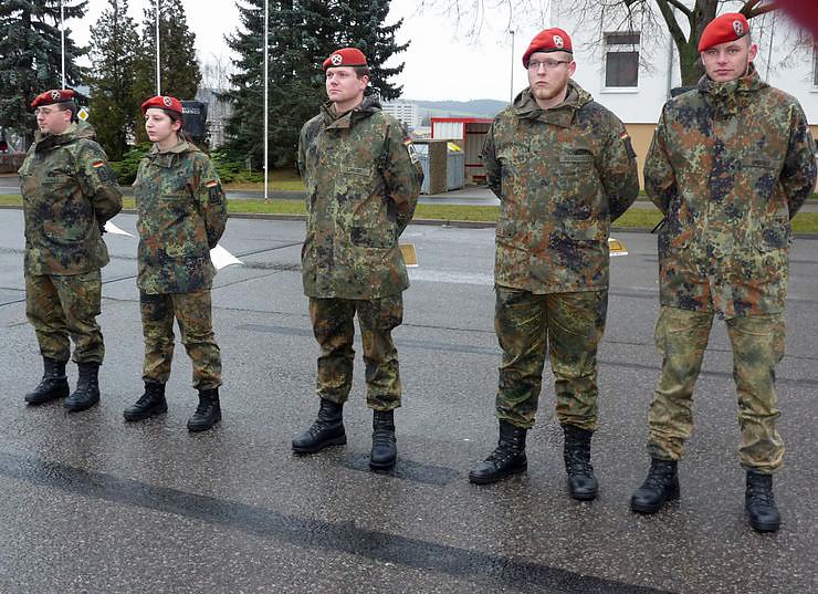 Dazu erhielt Lepp ebenfalls die Kommandeursmünze überreicht. Erscheinen zur Verabschiedung waren auch die Vorgänger von Schaus im Amt, Obertleutnant Rudolph und Oberstleutnant Glaab, sowie der erster Chef in der Batterie der jetzige Oberstleutnant Osan, damals noch Hauptmann.