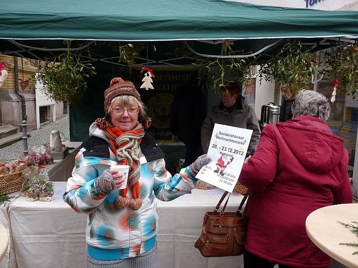 Am Stand von Soroptimist wurden Getränke für einen guten Zweck verkauft. Letzte Jahr kam es dem Sondershäuser Frauenhaus zu Gute. Mit den Einnahmen dieses Jahren wird die Verkehrswacht Sondershausen unterstützt. Viele weitere Vereine boten für den gute Zweck Waren an, ob die Düne, die wieder Waffeln verkaufte, oder das Haus der Jugend die Glühwein verkauften