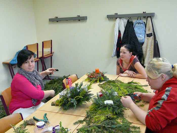 Passend zur bevorstehenden Adventszeit fertigten Schüler und Schülerinnen der Ausbildungsberufe Fachpraktiker Küche/ Beikoch, Hauswirtschaftshelfer, Fachpraktiker Metall/ Metallbearbeiter, Bauten- und Objektbeschichter und Holzfachwerker unter fachkundiger Anleitung kreative Adventsgestecke, weihnachtliche Dekoartikel, Weihnachtskarten und Fensterschmuck, die von den Schülern als Geschenke für Familie und Angehörige mit nach Hause genommen werden können.